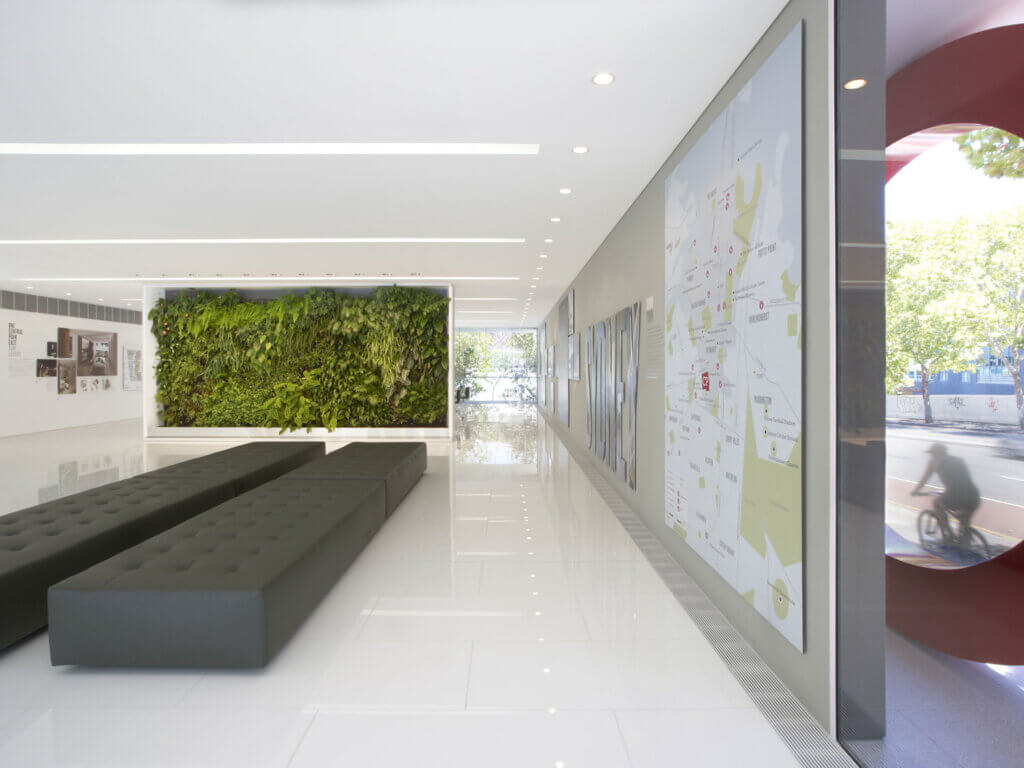 Broadworth Modular was commissioned by Fraser Property Group to construct a display pavilion for the One Central Park development in the heart of Sydney on Broadway. Our team worked with Surry Hills Architects Smart Design Studio throughout the project and offered modular construction advice to develop structural systems and concepts. The site’s inner city location presented many constraints including space, time and traffic that ultimately led to the decision to use a modular system to fast track the construction process and allow for the building to be moved at a later date. The modular system was constructed using high grade Bluescope Truecore steel supplied by our in house steel framing company Australian Steel Framing.